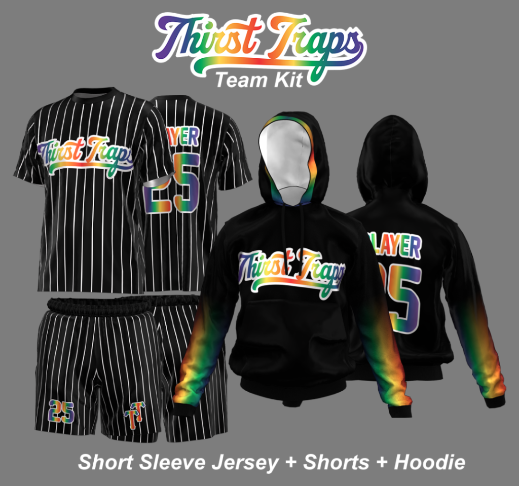 Kit Includes: Thirst Traps - Short Sleeved Jersey Thirst Traps - Hoodie Thirst Traps - Shorts